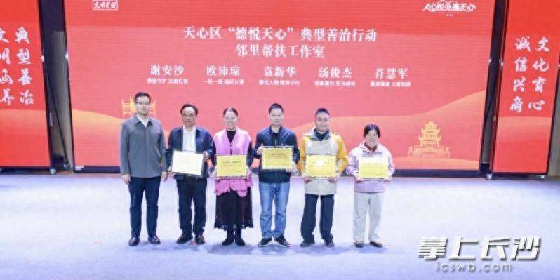 活动现场,肖慧军、欧沛琼、汤俊杰、袁新华、谢安沙5个“邻里帮扶工作室”主理人登台接受授牌,湖南聚和义餐饮管理有限公司(天宝兄弟)、长沙远征机动车驾驶员培训有限公司、长沙楂堆甜品有限公司、长沙二五柒柒生鲜有限公司、“小亦小”小吃铺5家“诚信商户”获表彰。同时,活动还为天心阁公园、恰同学少年广场、天一美术馆、天心琴社、蒋家山农场5处“行走的思政课”课外教学基地授牌。