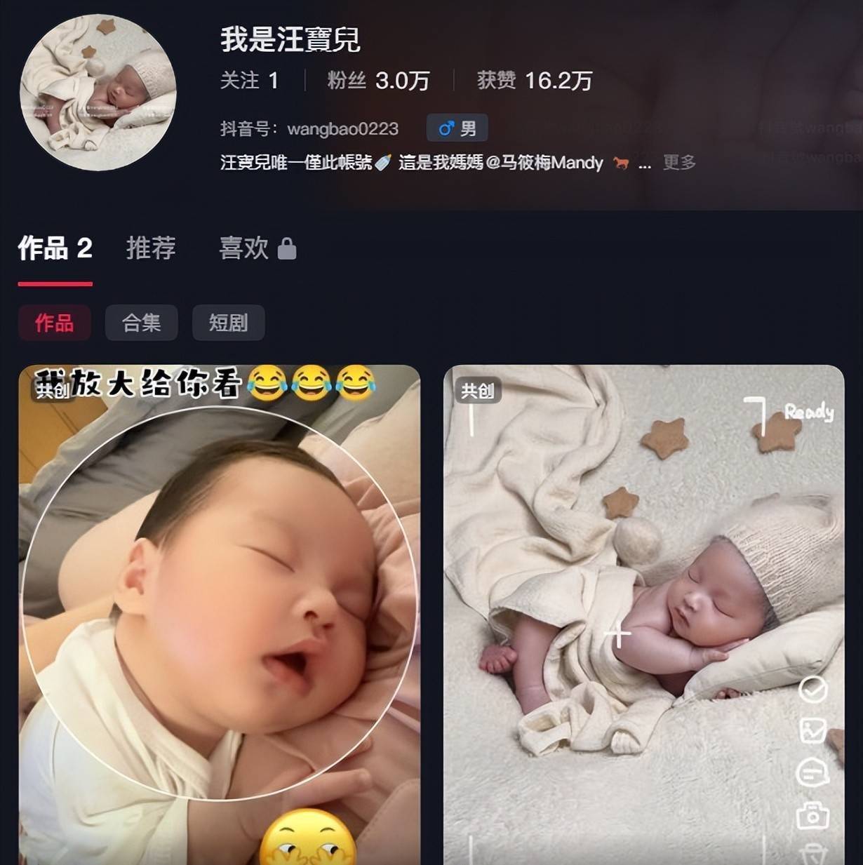 真挺有意思的——一个从前被全网盯着“查户口”的女人,生完孩子反倒把日子过出了节奏感。3月27日那天,马筱梅发了条视频:汪宝趴在浅灰床单上,小脸皱着,眼皮沉得像盖了两片花瓣,头顶那顶毛线帽还歪着,一缕胎发从帽檐底下钻出来。她没加滤镜,没调亮度,连水印都压在宝宝左耳下方,明晃晃写着“原创·勿盗用”。