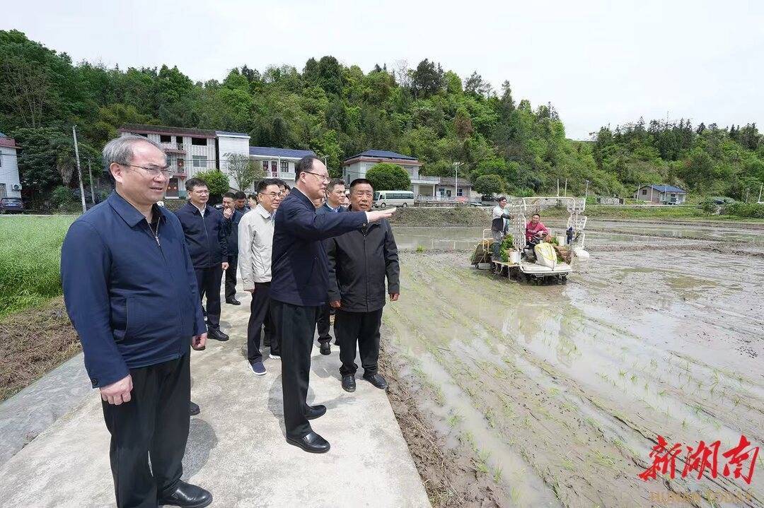 沃野逐春光,春耕正当时。张家界萍远稻谷种植合作社的田埂上绿意盎然,自动插秧机穿梭其间,给水田披上了“绿装”。毛伟明一行实地察看秧苗长势,了解农资供应情况,与种粮大户细算成本账、收入账,勉励他在广袤田野上辛勤耕耘,把日子越过越红火。毛伟明说,要千方百计抢抓农时做好春播春种,提升生产机械化水平,以智慧农业赋能田间管理,持续推进农业适度规模化经营,为全年粮食稳产增产打牢基础。